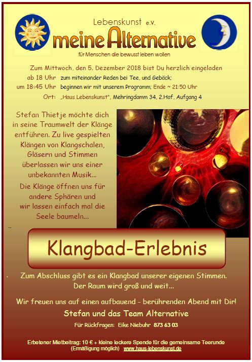 Das Team von "meine Alternative" lädt einmal im Monat mittwochs im Haus Lebenskunst zu einem gestalteten Abend ein, immer mit Gedankenaustausch.