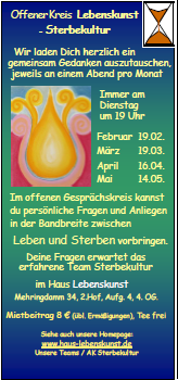 Der Offene Arbeitskreis Lebenskunst - Sterbekultur lädt einmal im Monat dienstags im Haus Lebenskunst ein zu einem Gedankenaustausch.